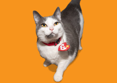 “Cats may make some people jitter, Please don’t be afraid of this critter, If you’re lonely or have nothing to do, This Beanie Baby would love to hug you!”